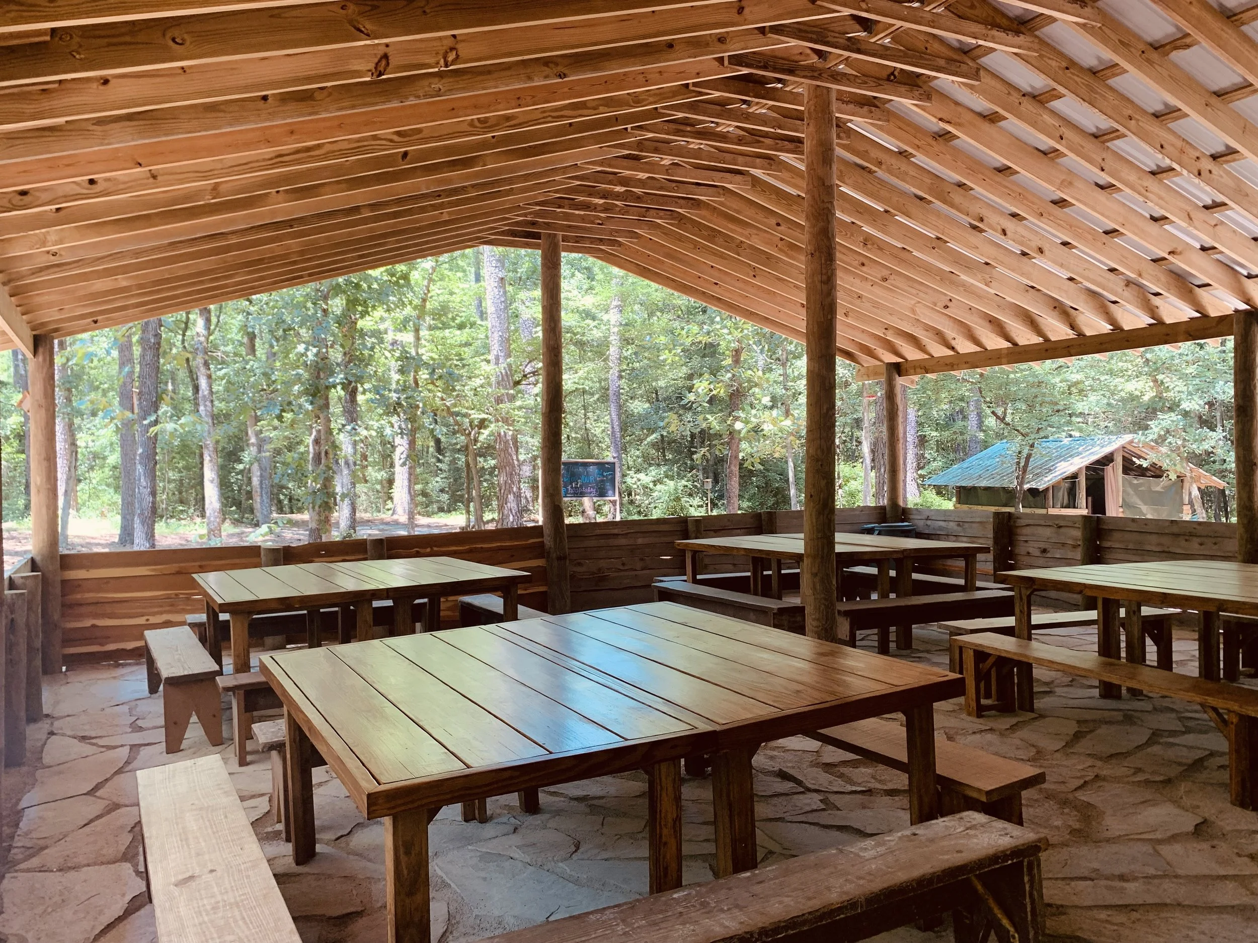 All cabins are within walking distance of an indoor bathroom and shower house with several private stalls. For a more rustic option, guests can enjoy a private outdoor shower and a covered toothbrushing station under the trees.